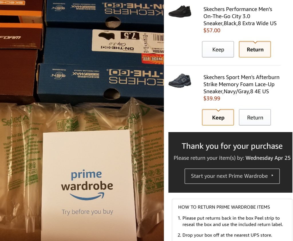 The order ships to you, and you aren’t charged for anything until 7-days after you receive the box. Once you get the order Amazon provides you with an easy list where you just select “Keep” or “Return”.