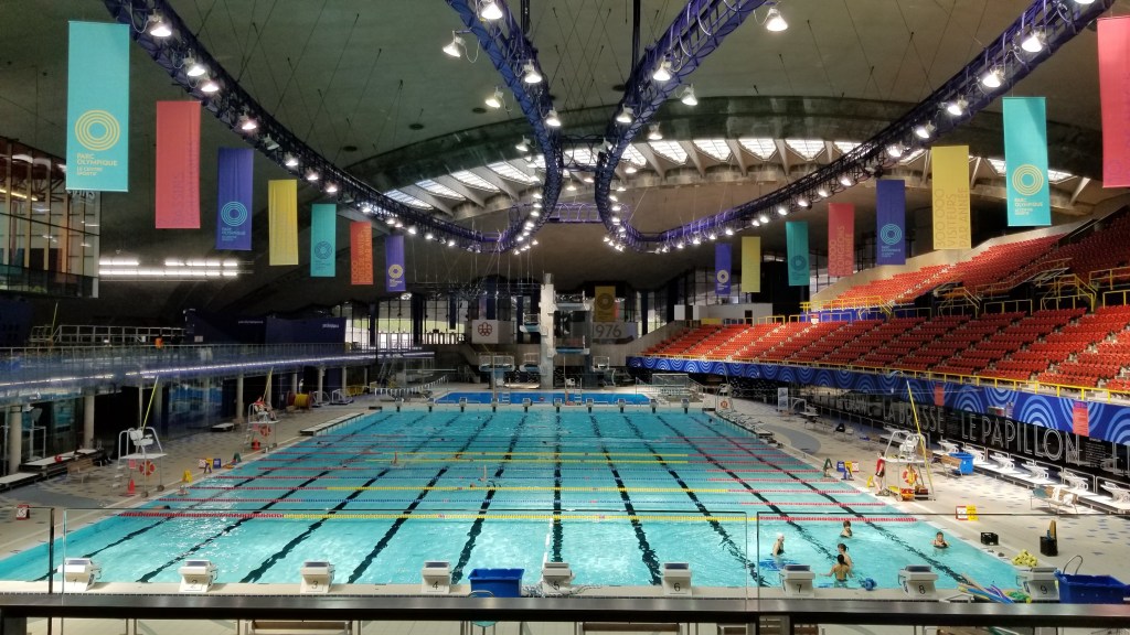 The Olympic pool and gym is still in use, open to the public at an incredible rate of $50(CAD)/year for membership. The pool is regulation 50m in length, but is used the wide way for regular people, to create more swimmable laps for us plebs.